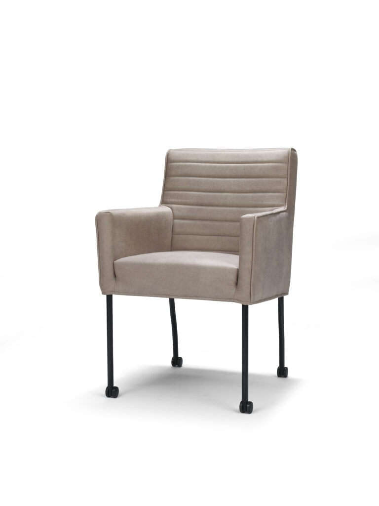 Eetkamerstoel Dino is een stoere en stijlvolle aanvulling op je eetkamer. Kies uit diverse onderstellen, zoals een ronde poot op wieltjes, spinvoet, sledevoet, kunststof draaivoet, elips draaivoet of gaia draaivoet. Daarnaast is de stoel verkrijgbaar in verschillende stoffen, zodat hij perfect bij je interieur past. Benieuwd naar de mogelijkheden? Bezoek onze showroom voor advies!