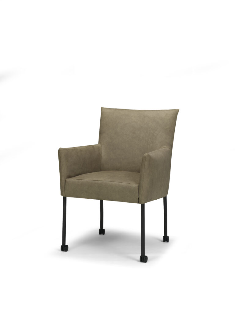 De Michelle eetkamerstoel met een vierkant houten onderstel en zachte ronde lijnen, waardoor de stoel een verfijnde uitstraling krijgt. Verkrijgbaar in een ruime keuze aan stoffen, waardoor je de stoel perfect kunt afstemmen op jouw interieur. De Michelle is ook beschikbaar met andere onderstellen.