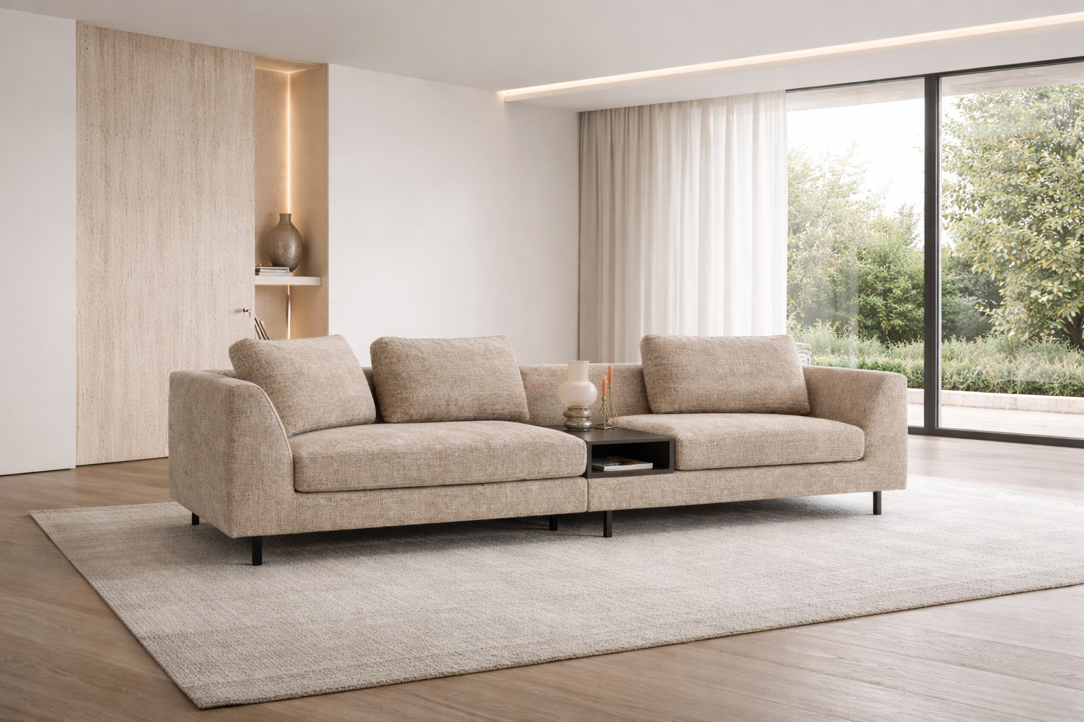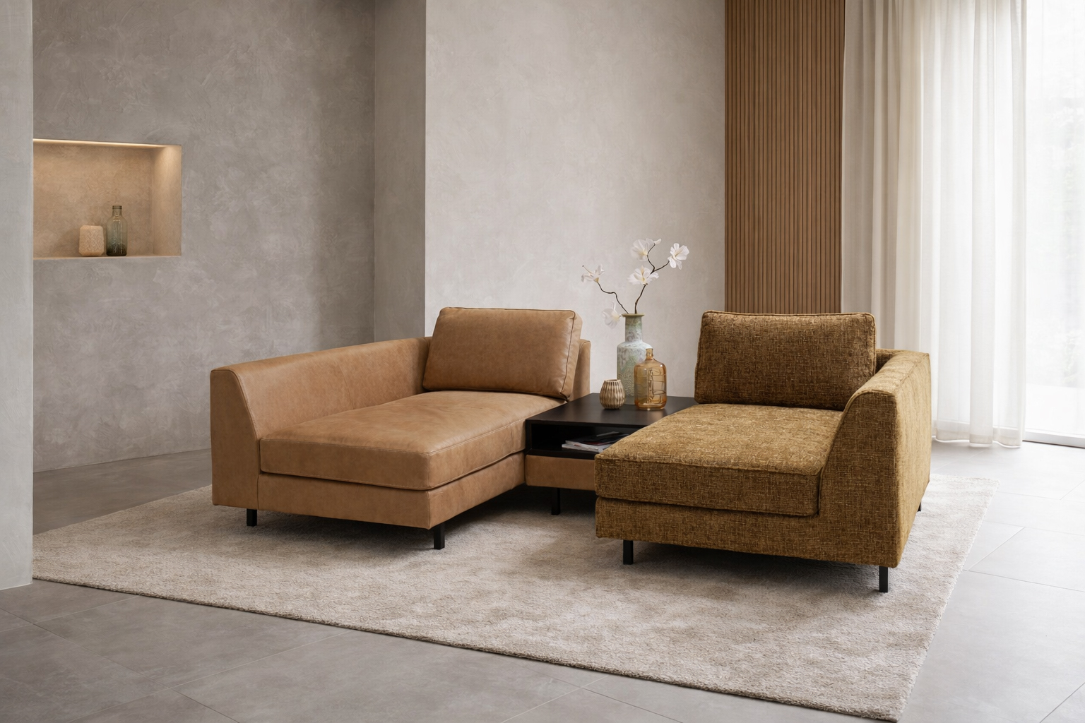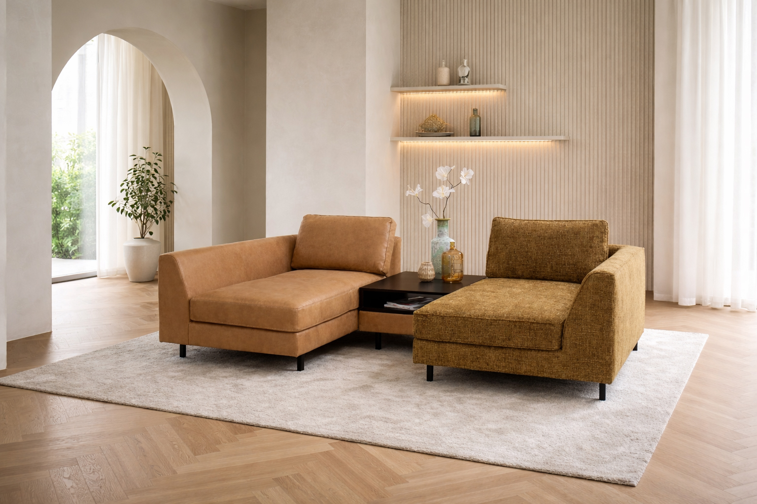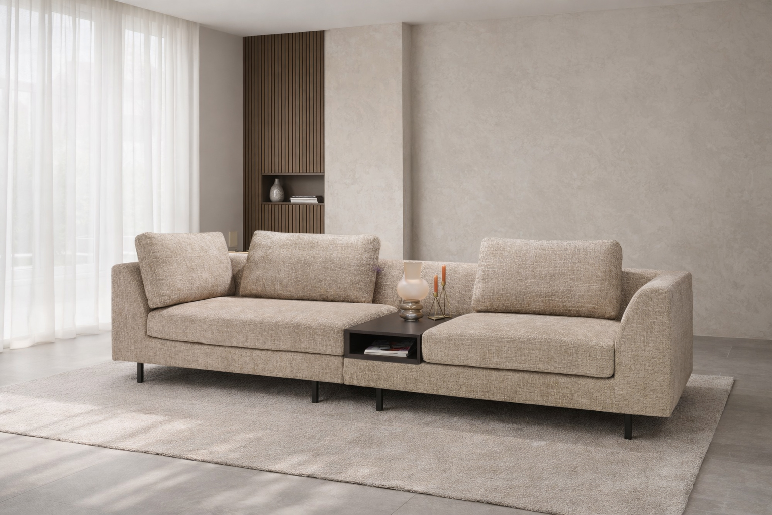 Granada is een luxe modulaire designbank met een modern ontwerp en zwart metalen pootjes. De losse rugkussens bieden optimaal comfort, en je kunt kiezen of je ze aansluit of niet. Het geïntegreerde tafel element geeft de bank een prachtig accent, met een gladde of gestepte rug en de tafel in twee kleurvarianten. Granada is beschikbaar in diverse opstellingen, stoffen en leersoorten, zodat je de bank volledig naar wens kunt samenstellen. Ontdek de stoffen- en leerstalen in onze showroom.